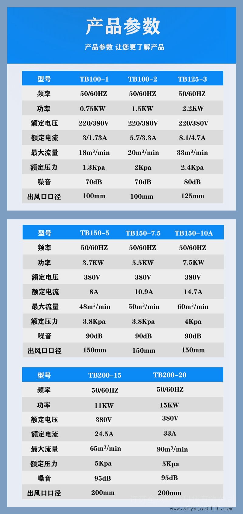 品牌:全风 型号:TB150-7.5 材质:铸铝 风机压力:中压风机 性能:低噪音风机 用途:管道风机 出风口:100 叶片数:12 转速:2800 配套电机功率:5.5 kw 风量:3000m3/H 风压:3800Pa 气力吹料送风中压风机全风TB150-7.5